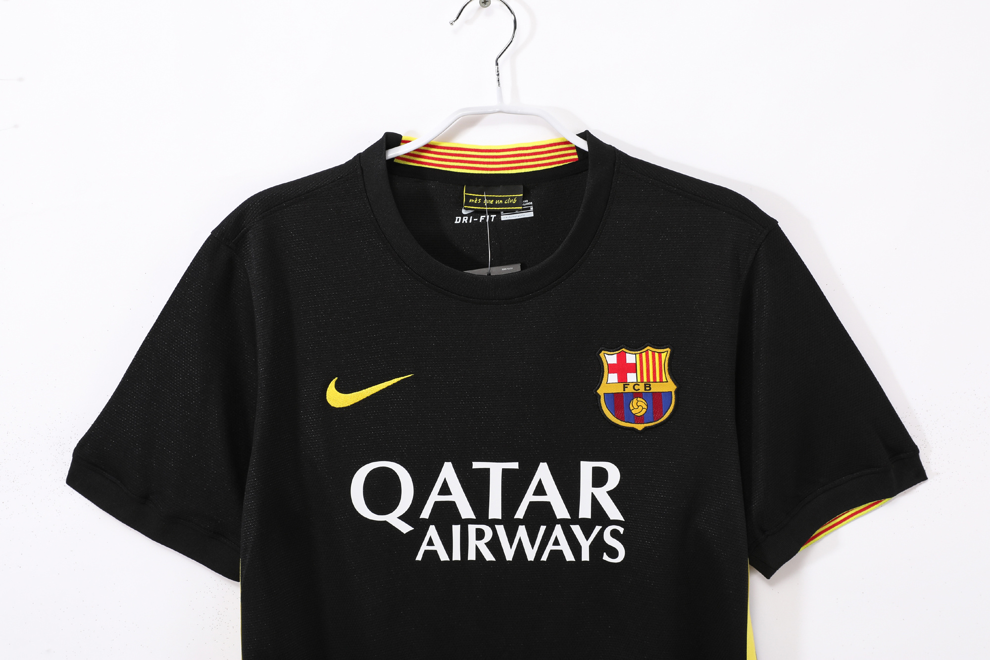 The third kit for this season was a sleek and powerful design, utilizing a predominant black color with striking yellow accents. The shirt features a modern sailor collar with a smooth, black body and subtle yellow vertical stripes on the sleeves. The inside of the collar and the sleeves incorporate the red and yellow colors of the Catalan flag for an internal touch of identity.
