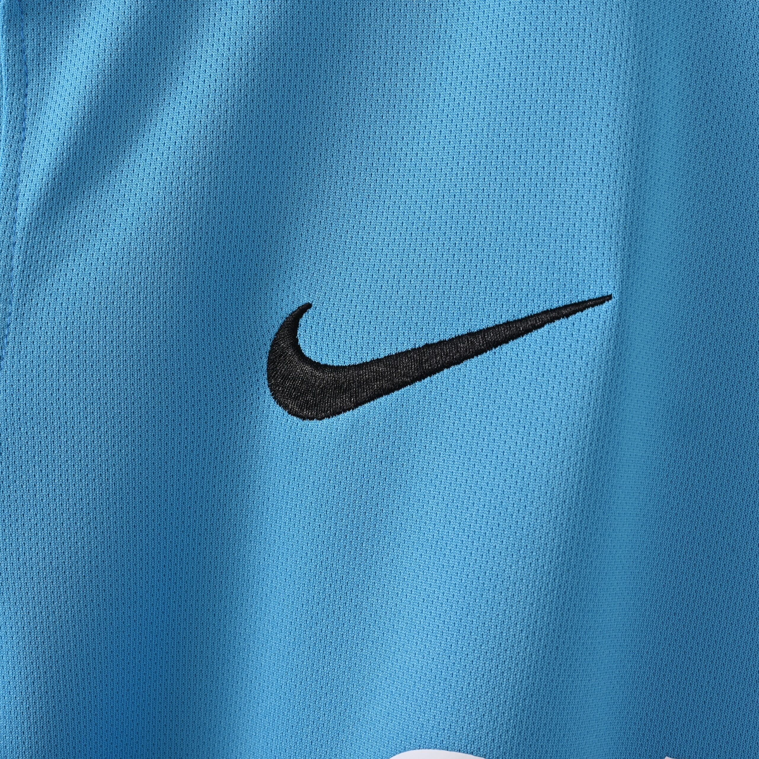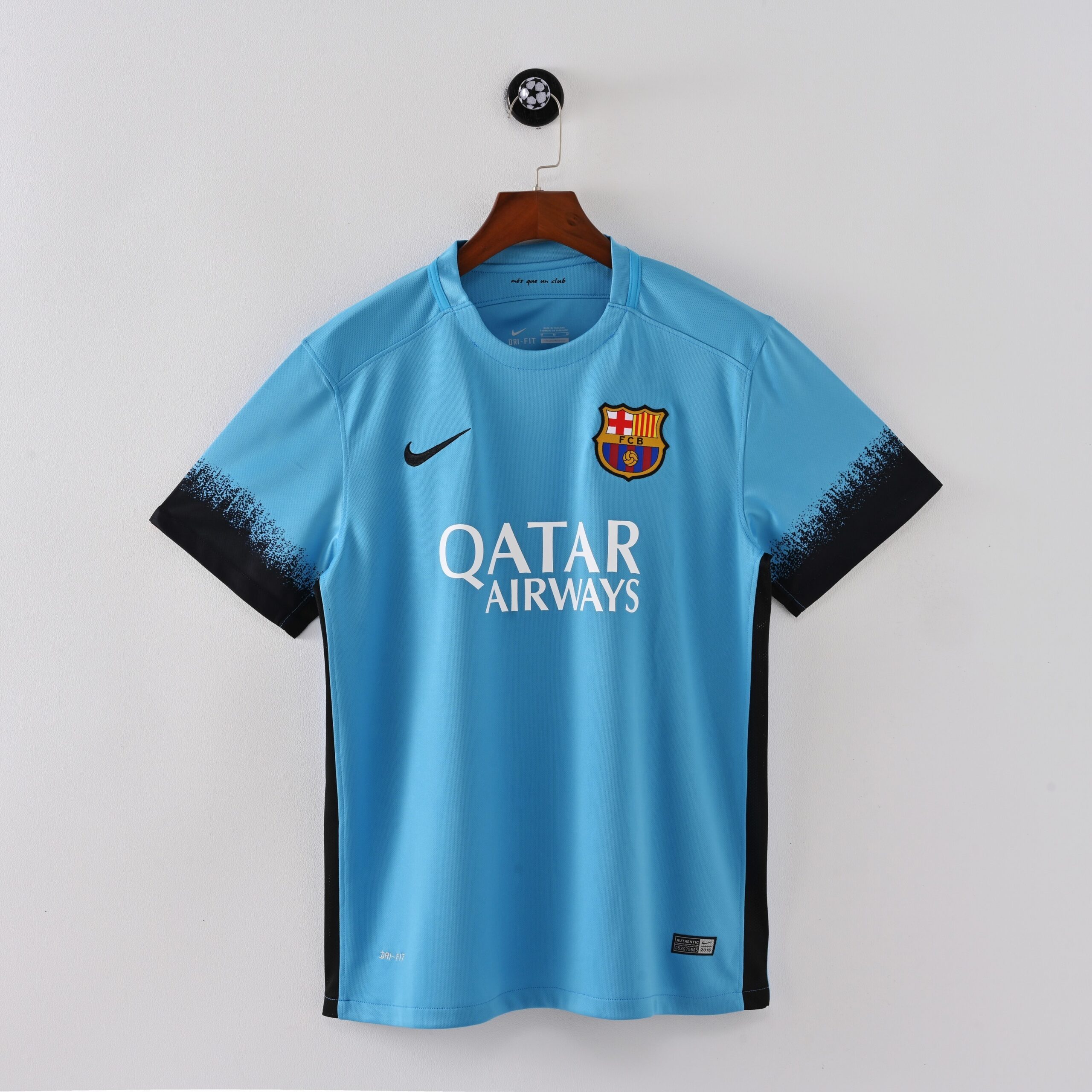 The third jersey featured a bold, monochromatic design in electric blue (also described as vibrant blue or turquoise). The primary shirt color is contrasted by black accents, which appear on the fading graphic on the sleeves. The sleeves feature a black-to-blue gradient effect that starts at the shoulder, adding a dynamic visual element.