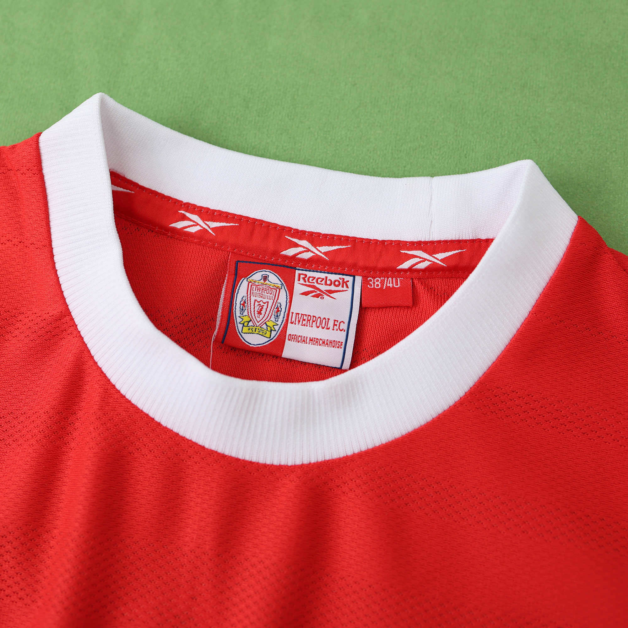 The Liverpool 1998–2000 home shirt, made by Reebok, marks a transition into the late ’90s / early–2000s era under manager Gérard Houllier. It features Liverpool’s traditional deep red base with crisp white trim around the collar and sleeves.